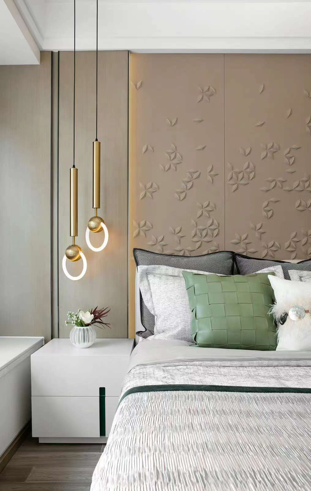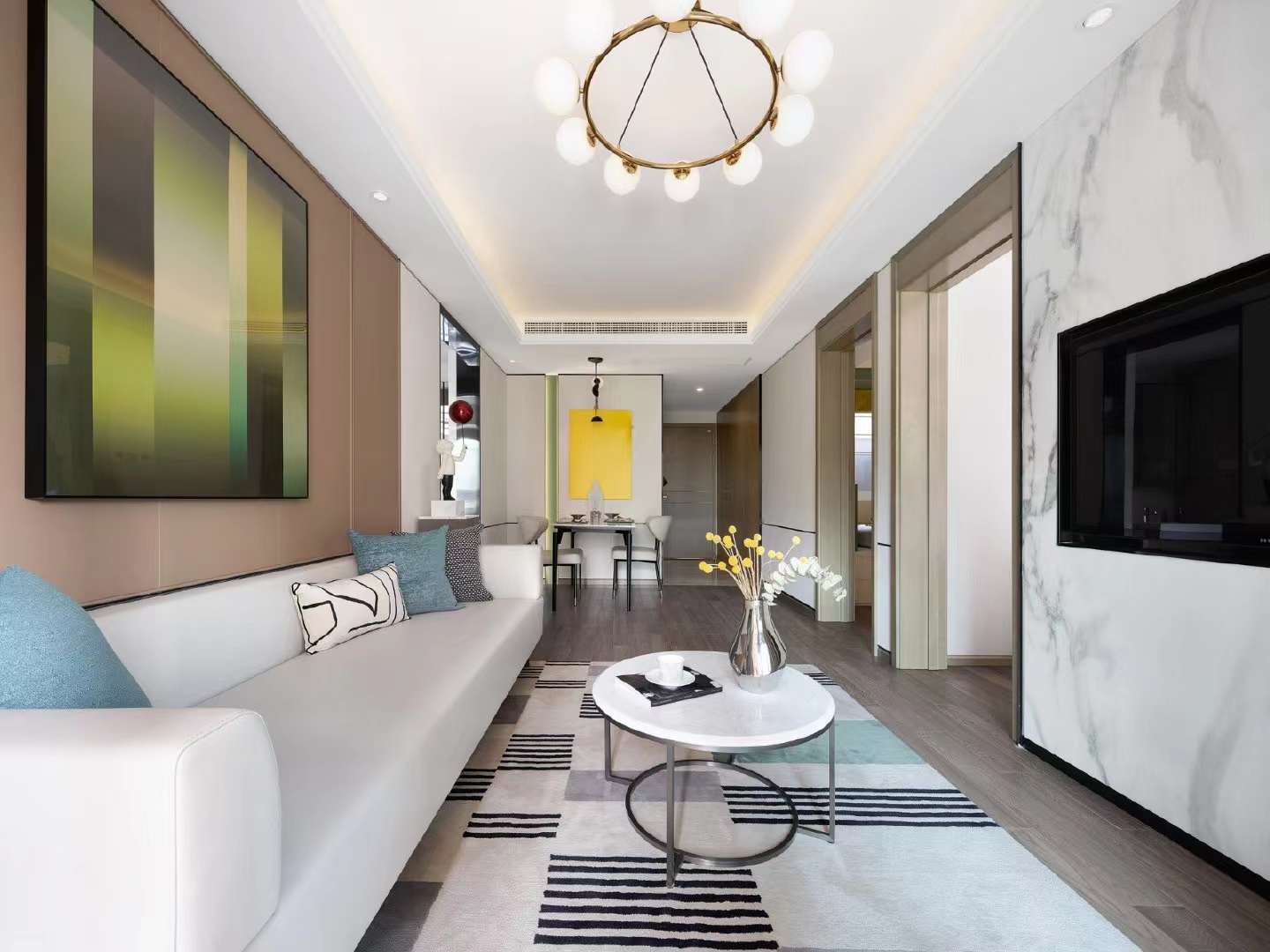 玄關、餐廳、客廳、南向陽臺,由中軸貫通,極大地縮短了動線距離。每個臥室都設有大面積飄窗,延伸空間感的同時,可以在此加上自己喜歡的軟裝,滿足老少不同的生活趣味。 客廳米白色調木飾面增加明度對比,低調的色彩營造給入住者留有很大的即興空間!