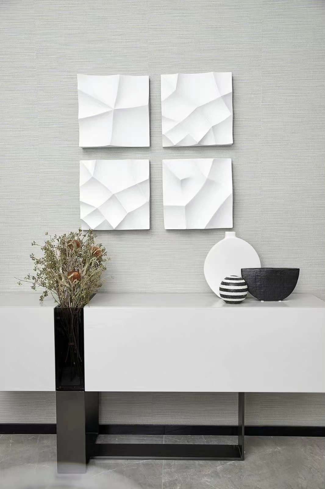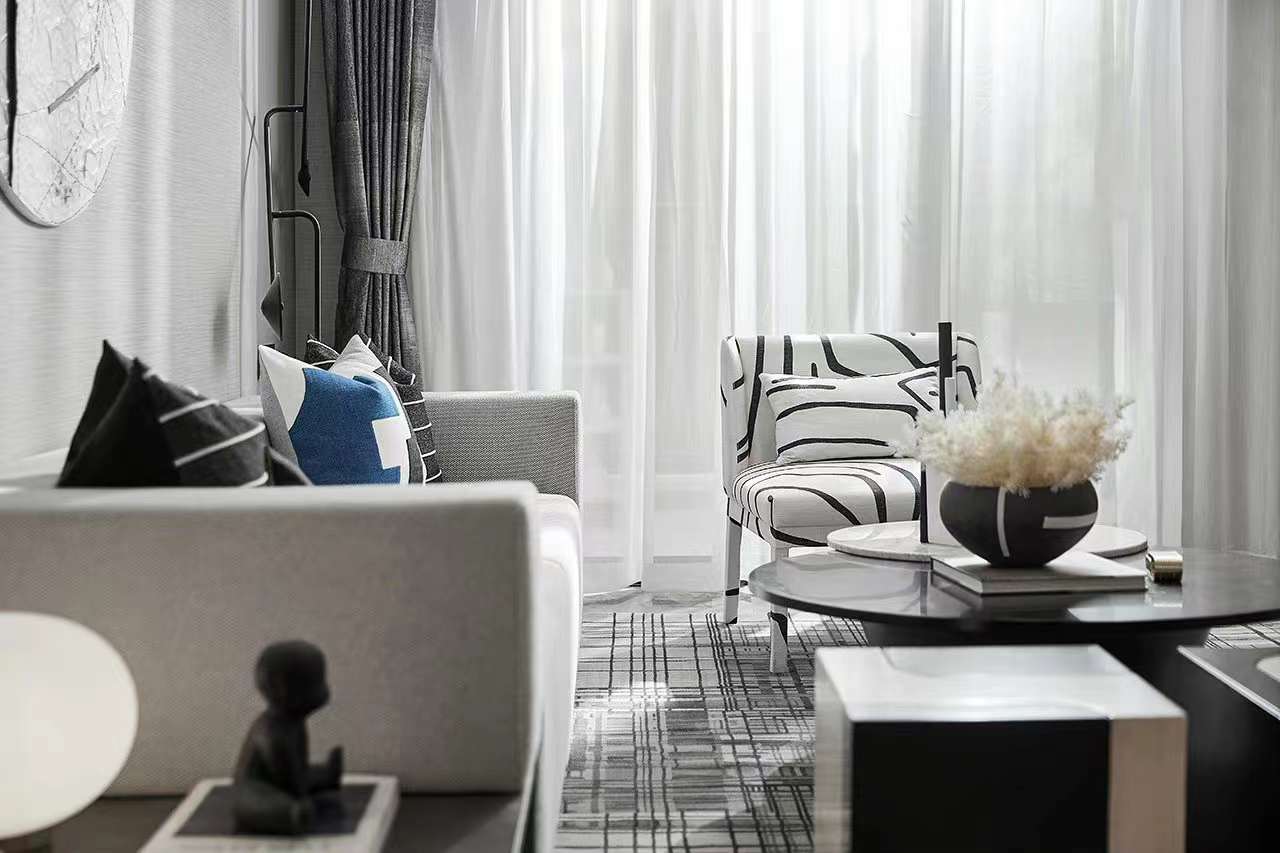 客廳空間褪去浮華的裝飾,以素白與雅灰為主,小面積的咖色與藍(lán)色帶起節(jié)奏感。從陶藝文化中萃取而來的元素,化為各種性格鮮明的線條、形狀和肌理,充斥在空間的細(xì)節(jié)處。藝術(shù)與生活的邊界在此彌散,營造出靜謐而有格調(diào)的閑適光景!