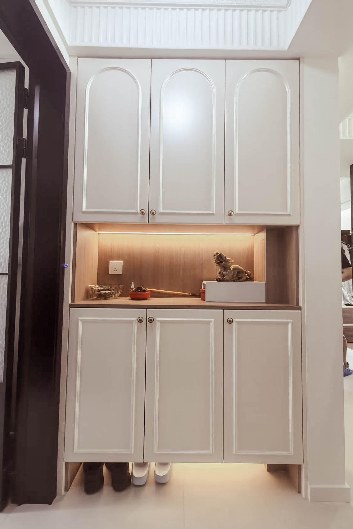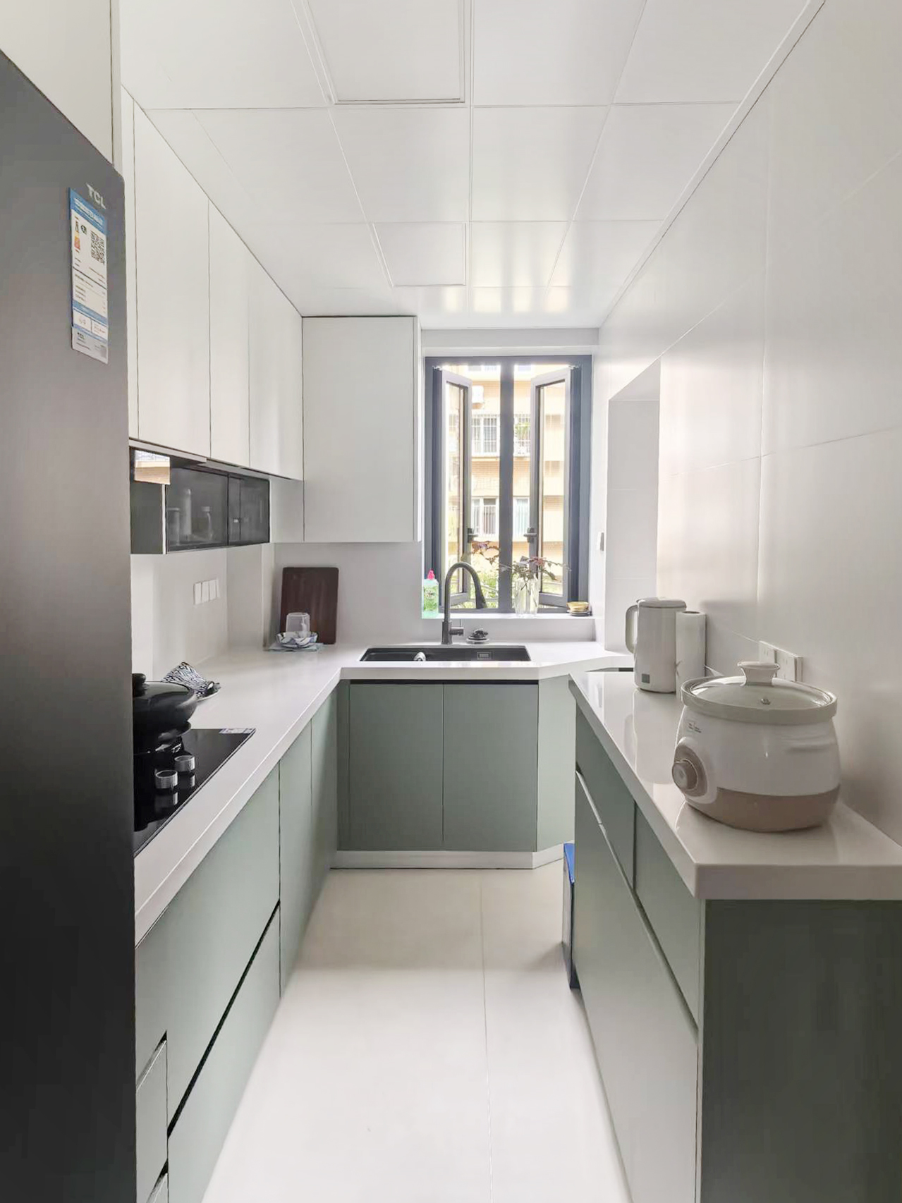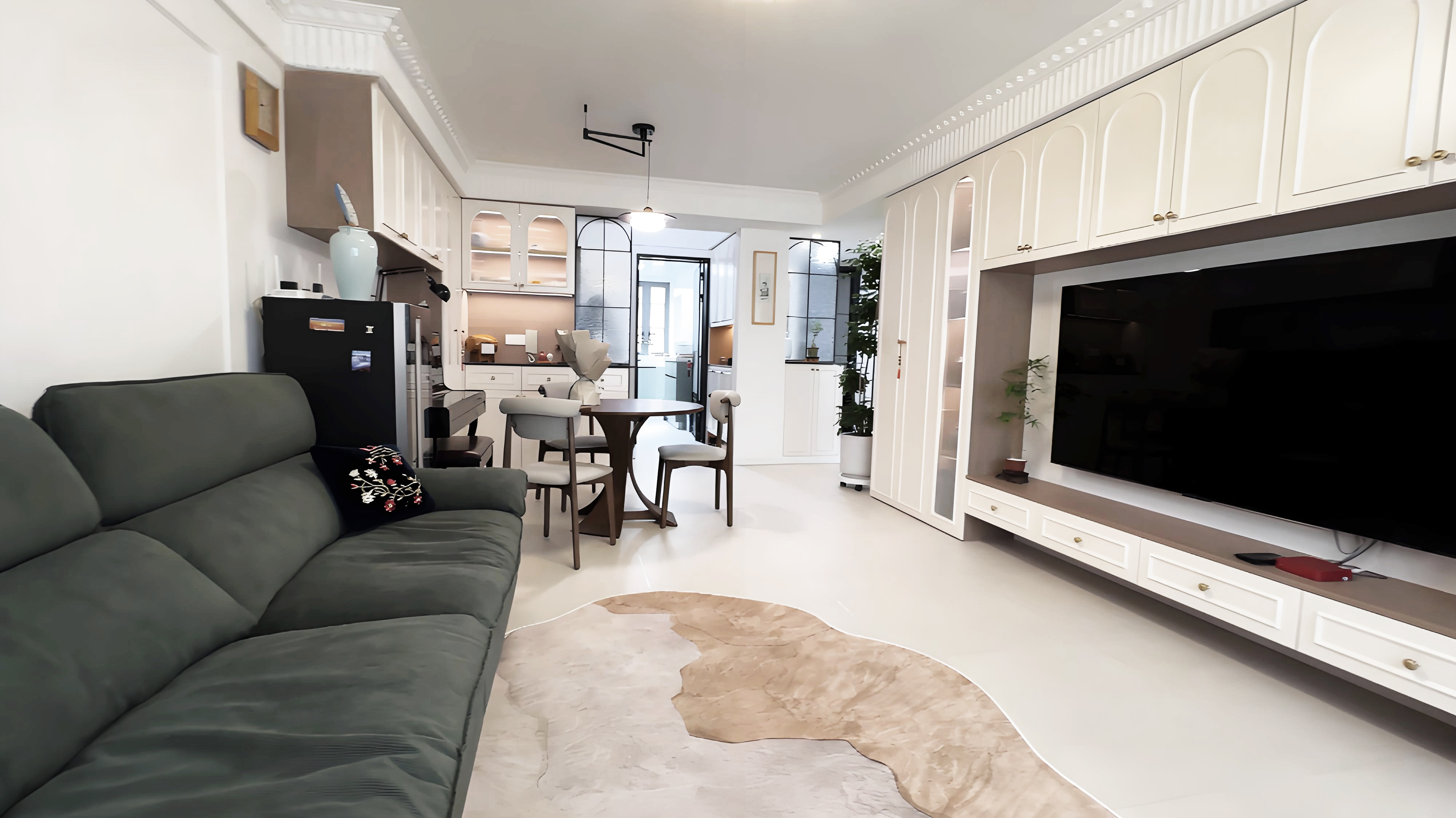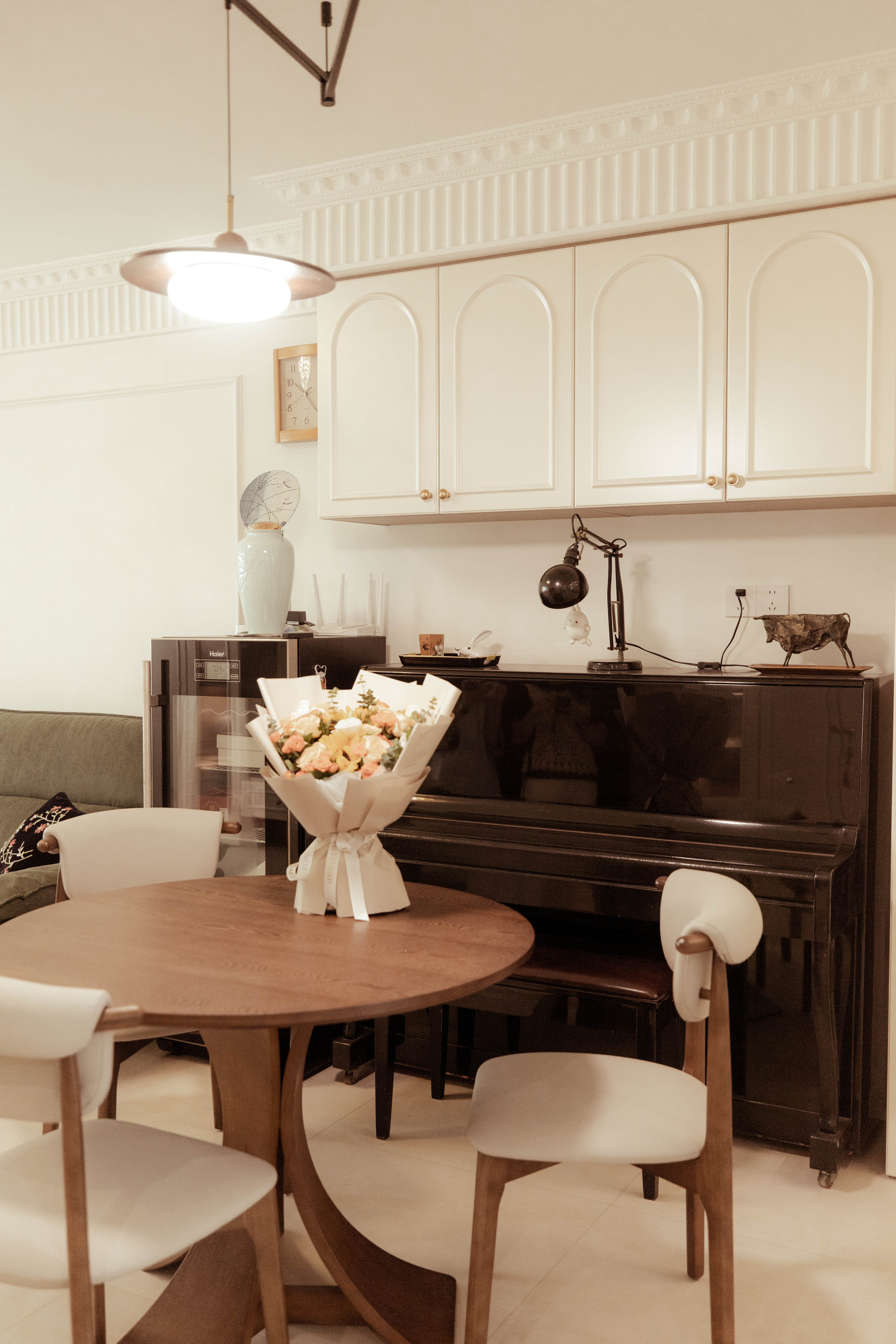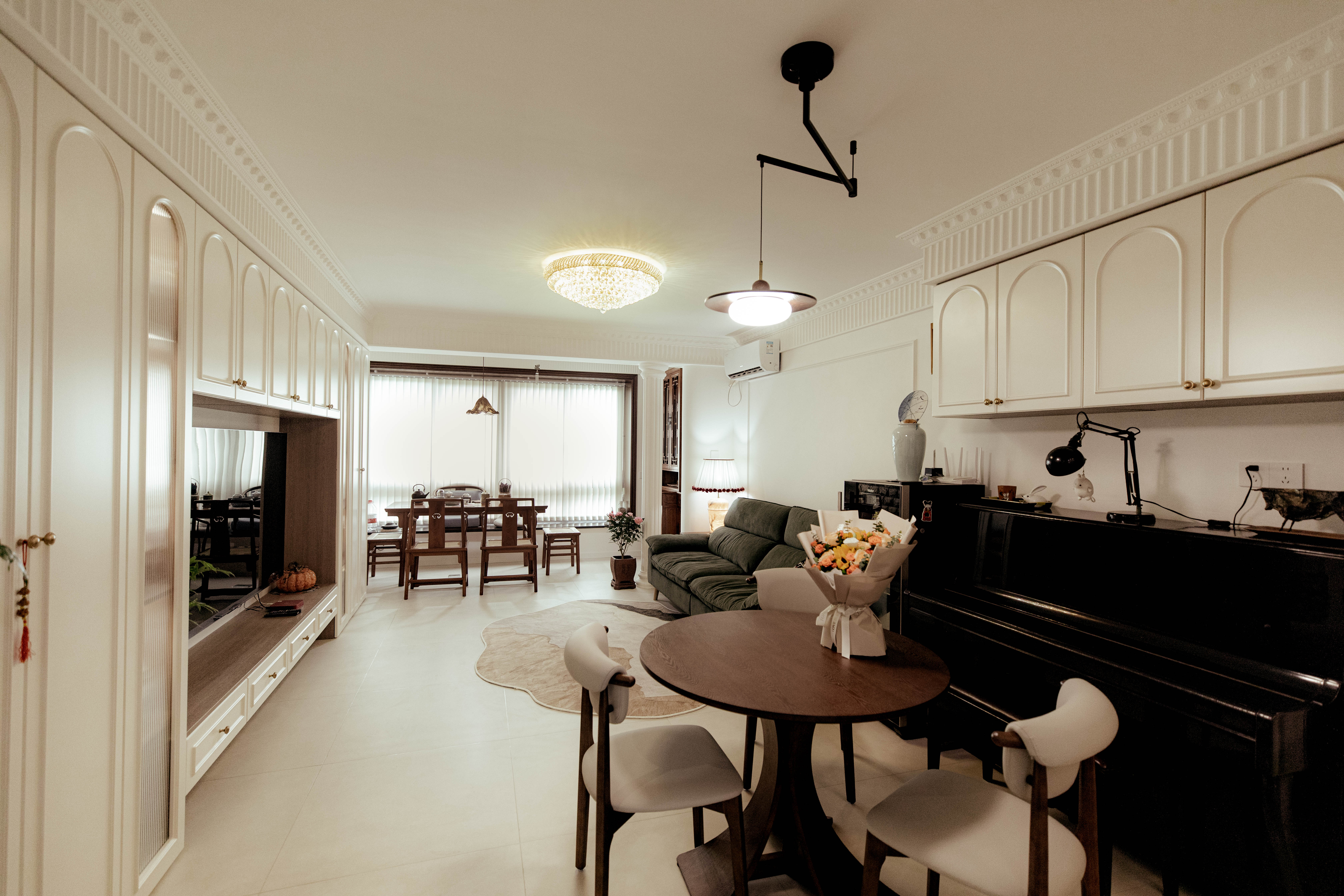 1.放大空間:復(fù)古隔斷作端景,弱化客餐廳與玄關(guān)、廚衛(wèi)的邊界感。 2.鋼琴移位盤活兩面墻:釋放客廳空間,整墻電視柜滿足收納+裝飾+展示需求。鋼琴自然劃分客餐廳,營造優(yōu)雅就餐氛圍。 3.茶室搬進(jìn)陽臺:舊家具進(jìn)廠涂漆翻新,和新家整體色調(diào)保持統(tǒng)一。 4.廚房連通工作陽臺,家務(wù)區(qū)集中歸置,動線優(yōu)化。