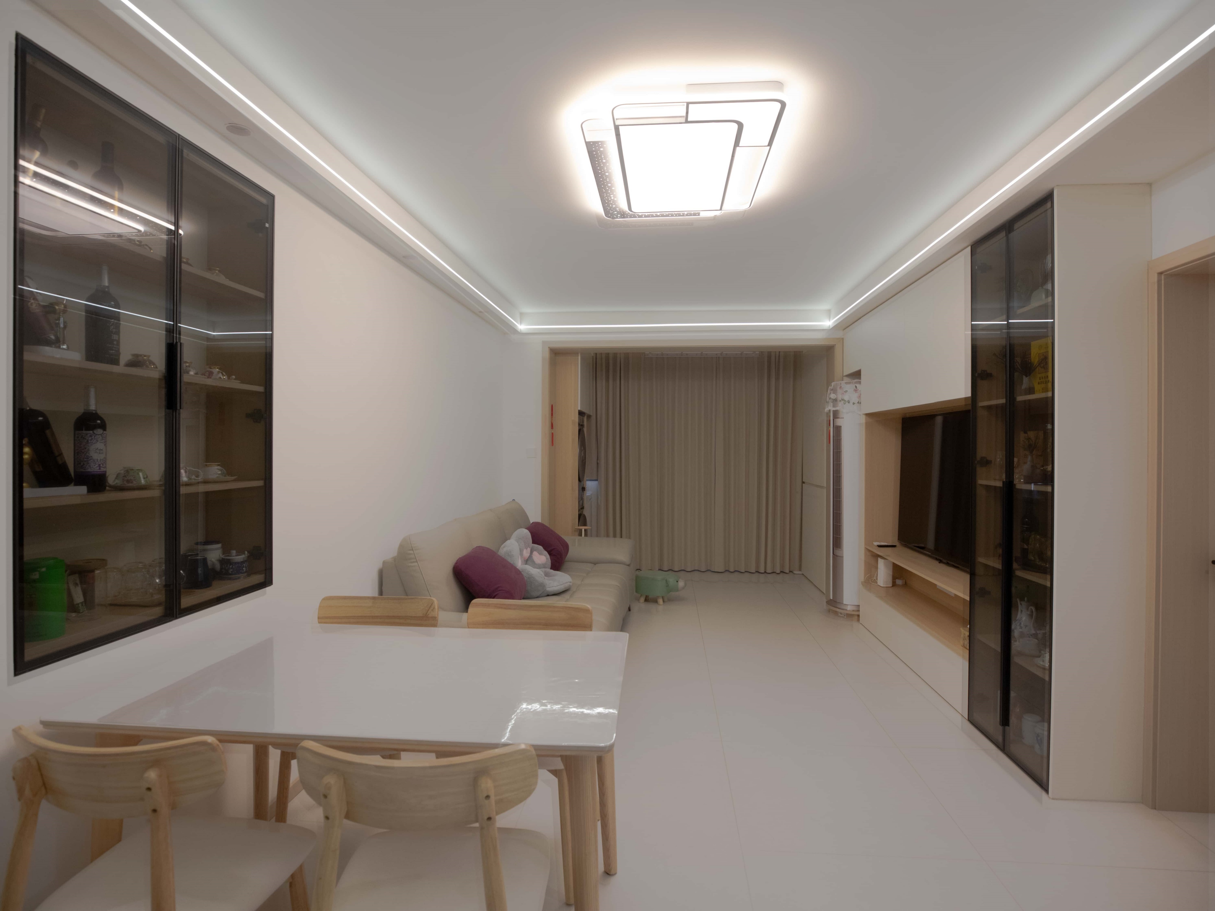 老房新生,不僅是風格的轉變,更是對居住者生活方式的深度回應。洪先生一家三口各有所愛:爸爸收藏紅酒,媽媽鐘情茶具,兒子熱愛二次元,一家人在這里住了二十余年,屋內布局早已不能滿足他們的日常生活和情感需求。面對琳瑯滿目的藏品與日常雜物,設計師謝倩楠以溫馨的原木風為基調,通過動線重組與全屋定制收納系統,打造一個能輕松打理的家